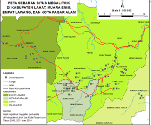 Berdasarkan pengamatan terhadap 22 wilayah persebaran megalitik didapat informasi ada sejumlah 593 situs megalitik yang meliputi: Aceh, Sumatera Utara, Riau, Kepulauan Riau, Sumatera Barat, Bengkulu, Jambi, Bangka-Belitung, Sumatera Selatan, Lampung, Banten, DKI, Jawa Barat, Jawa Tengah, Yogyakarta, Jawa Timur, Bali, Nusa Tenggara Barat, Nusa Tenggara Timur, Kalimantan Utara, Kalimantan Barat, Kalimantan Tengah, Kalimantan Timur, Kalimantan Selatan, Sulawesi Utara, Sulawesi Barat, Gorontalo, Sulawesi Tengah, Sulawesi Tenggara, Sulawesi Selatan, Maluku Utara, Maluku,Peta. Sebaran Situs Megalitik di Kabupaten Lahat, Muara Enim,