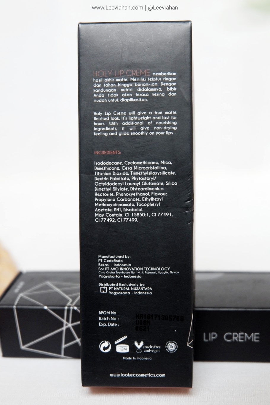 Untuk formula dari Looke Holy Lip Cream : creamy yang smooth, tapi hasil akhirnya dead matte bener-bener berasa mattenya di bibir. Tapi ringan, ringannya tuh bener-bener ringan banget! udah gitu gampang banget aplikasinya, cepet ngeset merata, pemakaian sekali pulas aja, udah pigmented di bibir. Padahal warna yang saya punya nude dan itu nutupin garis coklat bibir saya banget.