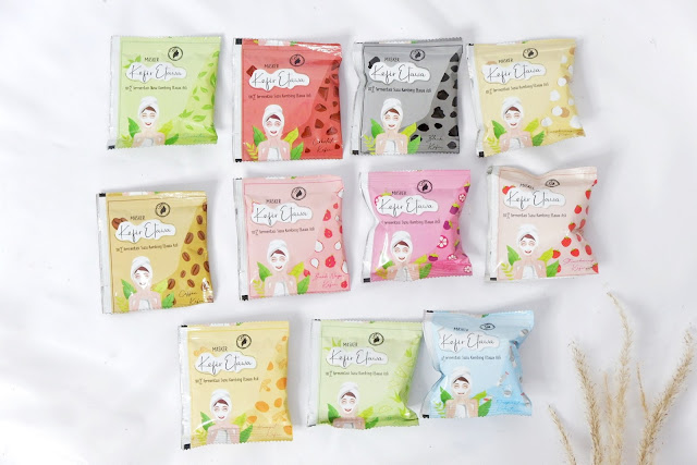 Varian masker kefir yang disediain Lovelykefir.nature banyak banget variannya ada 12 cuma diambar diatas kefoto cuma 11 keburu udah kepake 1 guys wkwkwk. Dan dari kesemua varian saya liat di IG nya punya fokus manfaat beda-beda :