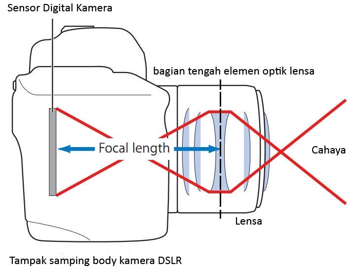 Focal length atau jarak fokus merupakan jarak dalam satuan milimeter (mm) antara bagian tengah elemen optik lensa dengan gambar yang terbentuk pada sensor atau film pada kamera.