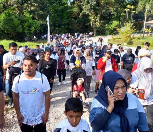“Setelah Klinik Semen Padang, rutenya jalan tanah berbatu, cukup menantang terutama bagi yang umurnya sudah berlebih, plus menggendong balita,” ujar Yose dan Adril, wartawan yang mengikuti jalan sehat.