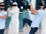 Pasangan muda ini menari bahagia di depan kantor urusan agama.