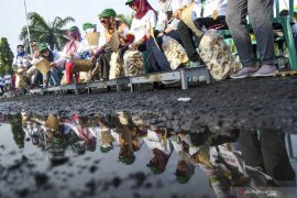 Sejumlah perajin memanggang kemplang dalam upaya pemecahan rekor dunia Museum Rekor Indonesia (MURI) logo K3 terbesar dari rangkaian kemplang panggang di Palembang, Sumatera Selatan, Jumat (28/2/2020). PT Pertamina Refinery Unit …