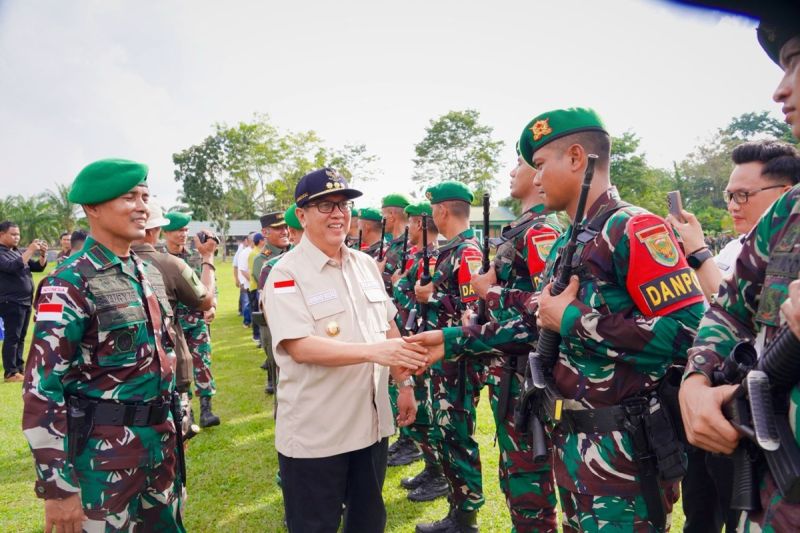 Muara Enim, Sumsel (ANTARA) – Pj Bupati Muara Enim H Ahmad Rizali melepas 450 prajurit Batalyon Infanteri (Yonif) 141 Aneka Yudha Jaya Prakosa (AYJP) untuk bergabung menuju Satuan Tugas (Satgas) Pengamanan Perbatasan (Pamtas) Wilayah Republik Indonesia dengan Papua Nugini, Rabu siang (12/06) di Lapangan Sai Sohar Yonif 141 AYJP, Desa Karang Raja, Kecamatan Muara Enim.