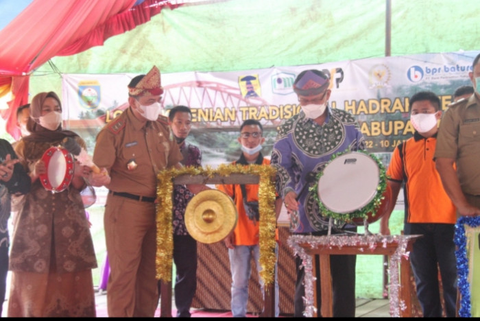 Baturaja, BP–Plh Bupati OKU Edward Candra membuka Lomba Kesenian Tradisional Hadrah/Terbangan/Syarofal Anam Tingkat Kabupaten OKU bertempat di halaman Kantor Desa Pusar, Kecamatan Baturaja Barat. Selasa (4/1/2022).
