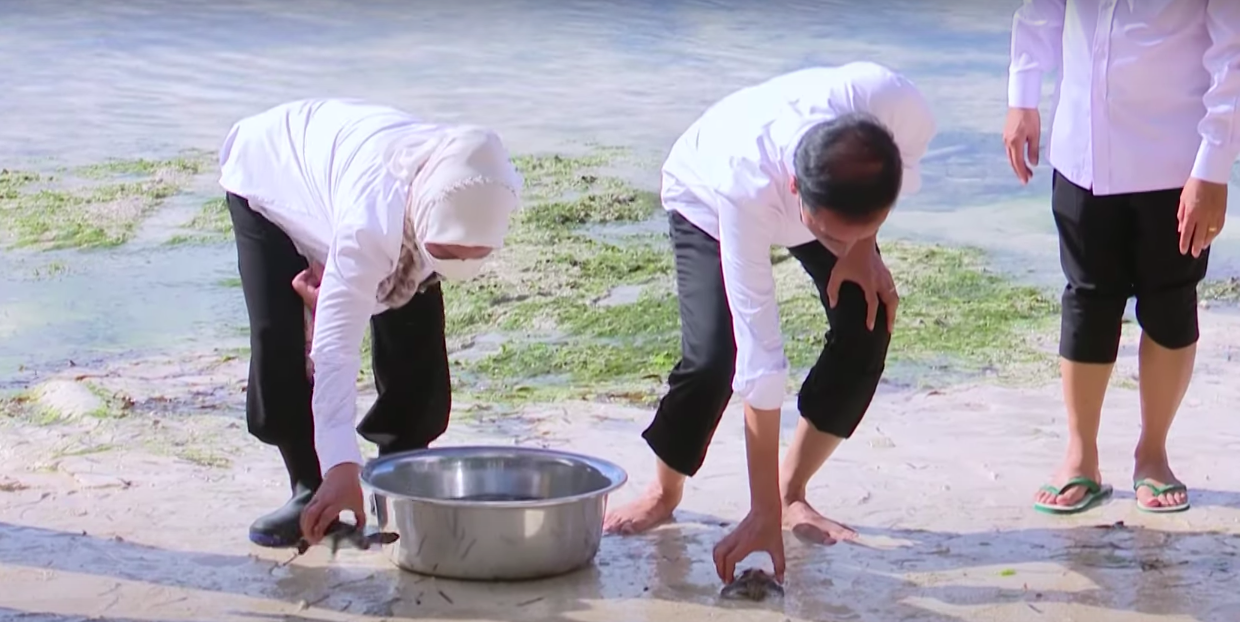 Selain melepas tukik, Presiden dan Ibu Iriana Jokowi juga melakukan transplantasi terumbu karang.