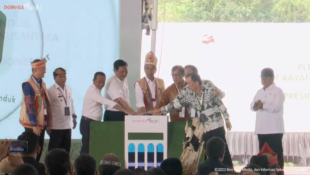 Presiden RI Joko Widodo secara resmi melakukan peletakan batu pertama atau groundbreaking proyek Pembangkit Listrik Tenaga Air (PLTA) Mentarang Induk PT. Kayan Hydropower Nusantara, di Malinau, Kalimantan Utara, Rabu (01/03/2023) pagi.
