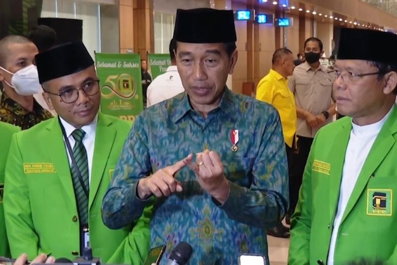 ANTARA – Presiden Joko Widodo di Tangerang, Banten, Jumat (17/2), menanggapi pertanyaan wartawan mengenai rangkap jabatan Erick Thohir, yakni sebagai Menteri BUMN dan Ketua Umum PSSI. Saat ini, Erick Thohir masih menjabat sebagai Menteri BUMN Kabinet Indonesia Maju periode 2019-2024 dan terpilih sebagai Ketua Umum PSSI periode 2023-2027. (BPMI/Afra Augesti/Rizky Bagus Dhermawan/Gracia Simanjuntak)