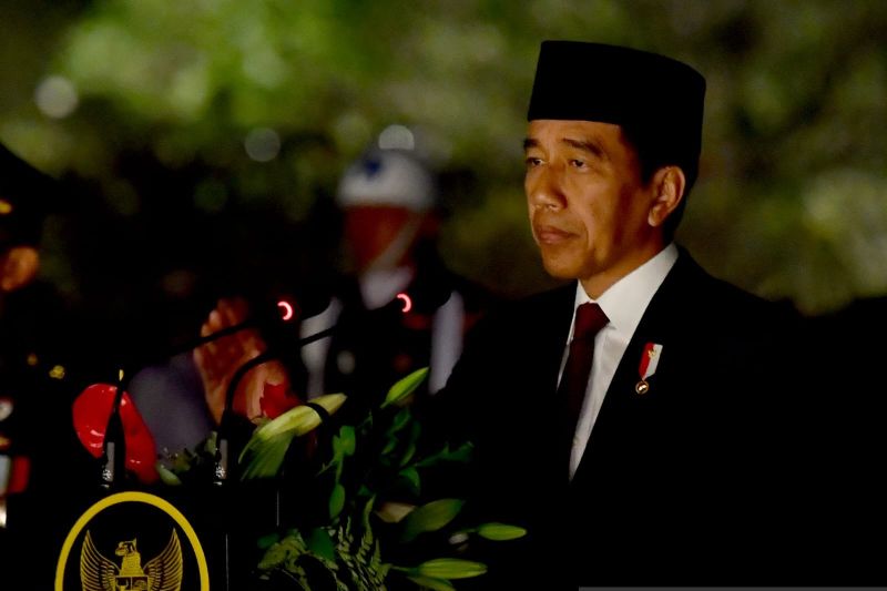 Jakarta (ANTARA) – Presiden Joko Widodo memimpin apel kehormatan dan renungan suci di Taman Makam Pahlawan (TMP) Nasional Utama Kalibata, Jakarta, Kamis, 17 Agustus 2023.