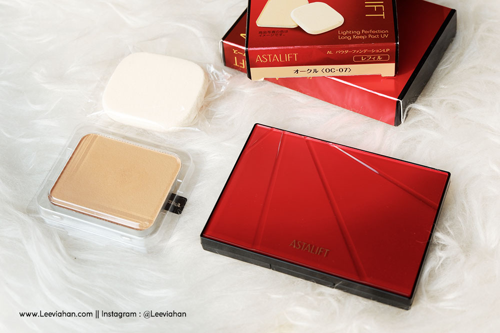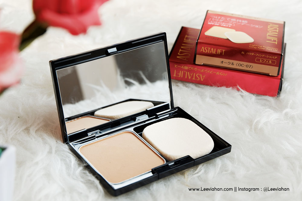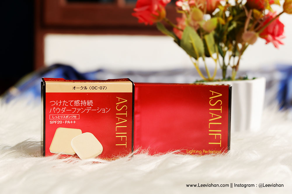 Keunggulan yang belum tentu ada dari bedak manapun, Astalift Lighting Perfection Powder Foundation dia mempunyai bahan unggulan antioxidant, astaxanthin, nano=lycopene dan 3 jenis collagen yang berfungsi melembabkan kulit. Itu yang bikin bedak keliatan nyatu banget dan nyaru kaya kulit asli wajah kita. Selain itu ada tambahan SPF 20 PA ++ yang manfaatnya melindungi kulit dari paparan langsung cahaya matahari.