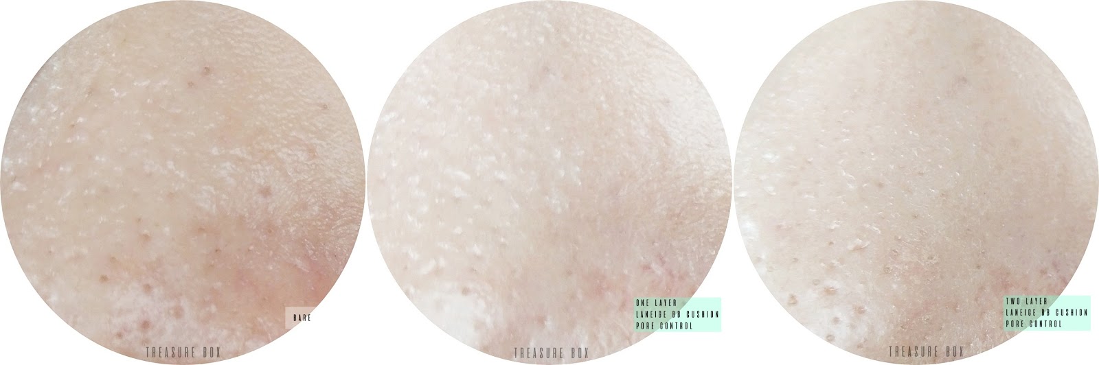 Mengenai tampilan pori-pori saat menggunakan Laneige BB Cushion Pore Control di kulit saya sama saja. Karena nyatanya pori-pori yang kita miliki bukanlah tampilan kulit jeruk yang tidak memiliki kelenjar minyak dan keringat. Kalau kamu menginginkan pori-pori yang tertutup sempurna, maka produk ini bukan solusinya. Karena pori-pori masih ada hanya saja tampilannya minimal karena efek bercahaya tadi yang membuat pori-pori sedikit blur. Salah satu trik yang bekerja untuk saya adalah dengan menepuk dari bagian bawah ke atas di daerah big pore untuk memaksimalkan penutupan pori-pori.
