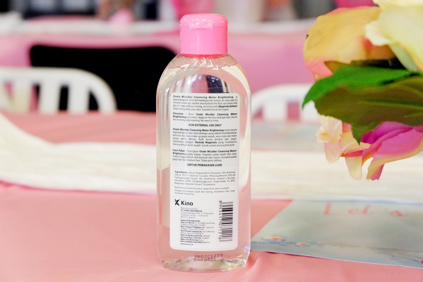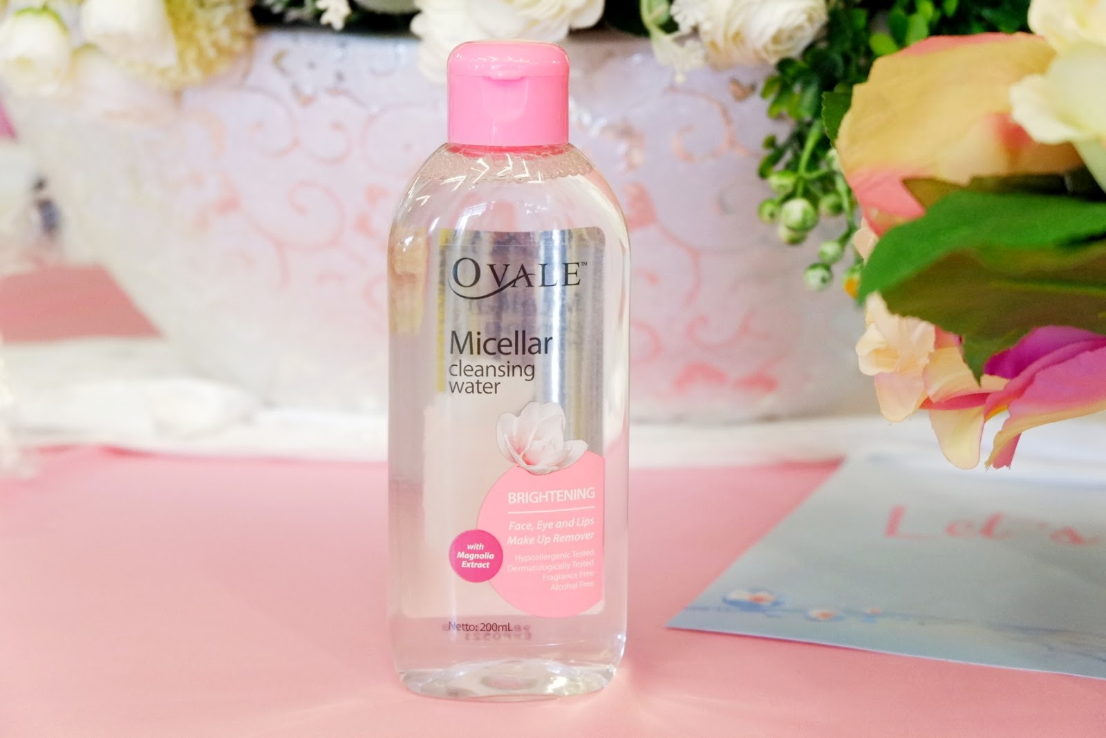 “Ovale Micellar Cleansing Water Brightening teruji secara hypoallergenic dan dermatologis yang efektif membersihkan kotoran dan sisa makeup pada wajah, area mata dan bibir tanpa perlu dibilas. Kulit terasa lembut dan segar. Fragrance Free & Alcohol Free“