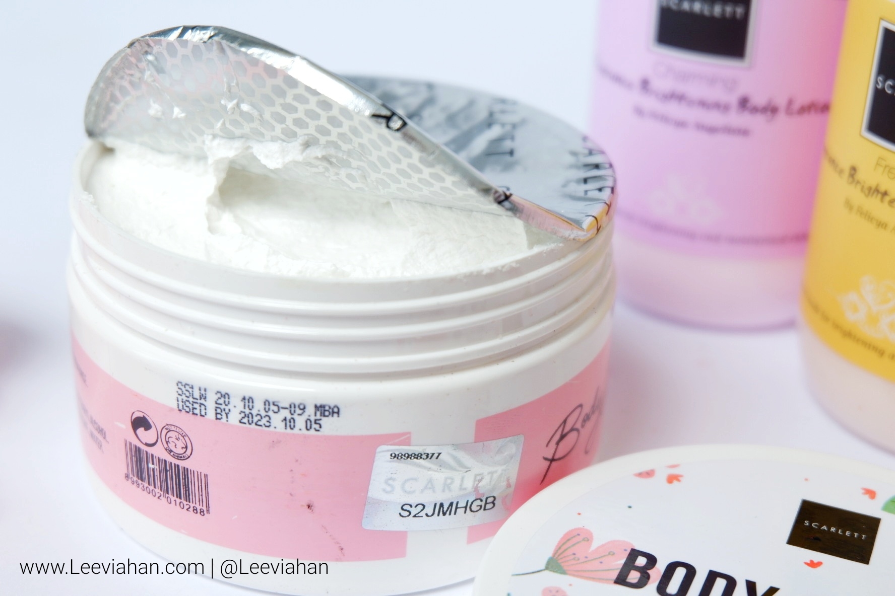Nah ini tekstur dari Scarlett Body Scrub nya berwarna putih, Dari dalam kemasannya dia padat tapi gampang di blend di kulit kok. Kalau diaplikasikan dikulit, terasa butiran scrubnya bisa dibilang kecil. Enggak kasar agak cendrung lembut, tapi masih berasa butiran scrubnya pas diaplikasikan dikulit. cocok lah tipe scrub kayak gini dikulit sensitif sekalipun, enggak akan kerasa perih saat digosokan.