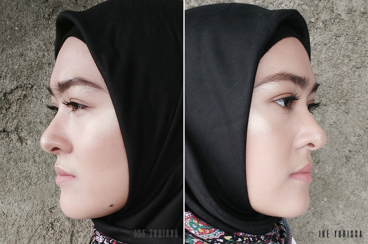 left-right: with & without The Balm Bahama Mama as contour. Saya menggunakan The Balm Bahama Mama juga untuk kedua kelopak sebagai eyeshadow |
