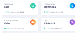 Dashboard. dimenu ini kalian bisa melihat tanpilan seperti tanpilan pendapatan, hasil refferal, cpm, dan masih banyak tanpilan yang lain yang bisa kalian lihat disini.