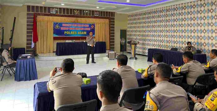 Satlantas Polres Agam melakukan Sosialisasi Tertib Berlalulintas untuk Bhabinkamtibmas di jajaran Polres Agam, Rabu pagi (15/6/2022).