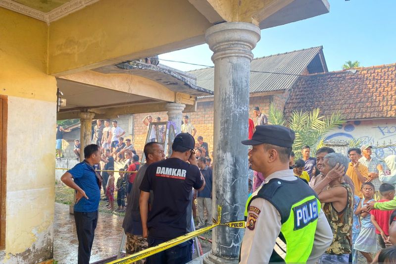 Aparat Kepolisian Ogan Ilir, Sumatera Selatan menangani kebakaran rumah yang menewaskan seorang lanjut usia(lansia) di Lingkungan II, Kelurahan Tanjung Raja, Kecamatan Tanjung Raja, Minggu (8/9/2024).