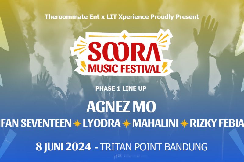Jakarta (ANTARA) – The RoomMate & LIT Experience akan menyelenggarakan SOORA Music Festival 2024 – The Most Exciting Music Festival 2024 pada 8 Juni 2024 di Tritan Point, Bandung, Jawa Barat.