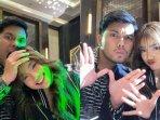 Pada kesempatan itu, Fuji juga mendekatkan tubuhnya dan menggandeng lengan Thoriq untuk melakukan foto bersama.