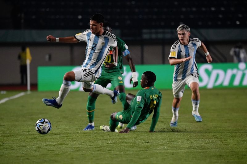 ANTARA -Timnas Senegal berhasil membungkam Tim Tango Argentina 2-1 dalam Piala Dunia U-17 Grup D di Si Jalak Harupat, Kabupaten Bandung, Sabtu (11/11). Kemenangan tiga poin tersebut menjadi bekal Senegal untuk mengalahkan tim Blue Samurai Jepang. (Dian Hardiana/Soni Namura/Ardi Irawan)