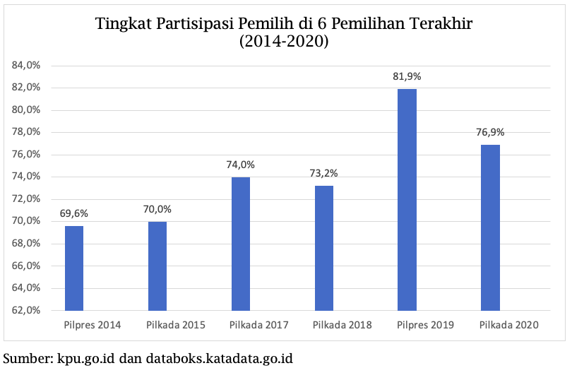 Meningkatnya partisipasi pemilih pada pemilihan kepala daerah tahun 2020 yang mencapai 76,9 persen, menjawab keraguan sejumlah pihak karena pemilihan diselenggarakan pada masa pandemi COVID-19, sekaligus menunjukkan antusiasme masyarakat.
