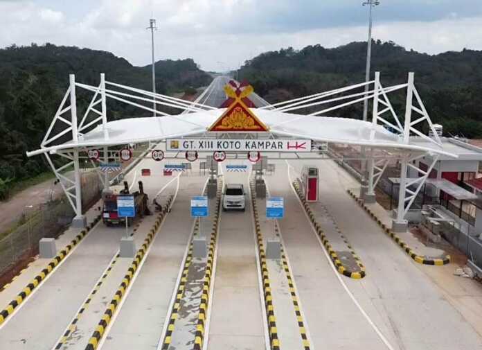 PADEK.JAWAPOS.COM-PT Hutama Karya (HK) selaku pengelola Jalan Tol Trans Sumatera (JTTS) Ruas Tol Bangkinang-Koto Kampar, diagendakan akan membuka pintu gerbang tersebut untuk dilewati masyarakat pada Sabtu (23/12/2023).