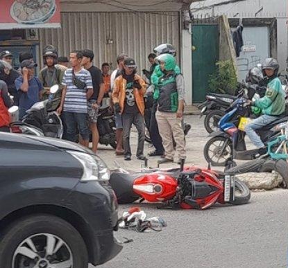 Namun naas, sekitar pukul 14:15 WIB, saat motor Honda CBR 150R dengan nopol BG 5983 ABV jatuh setelah hilang kendali lantaran ada kendaraan lain yang melawan arus.