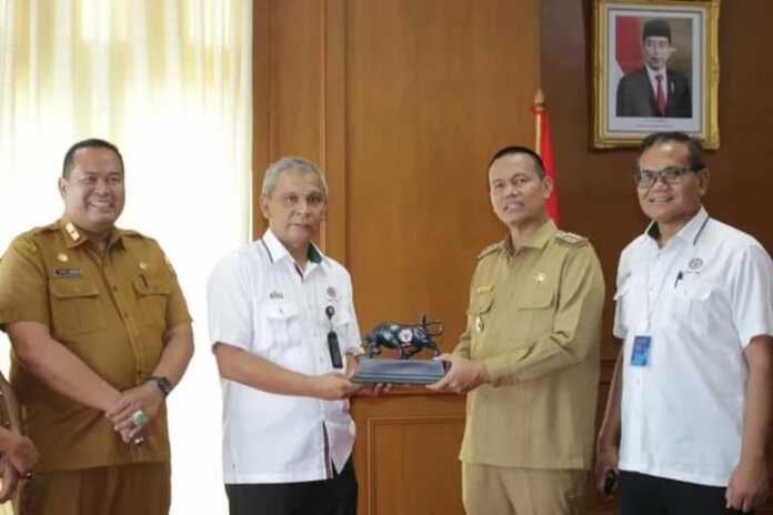 Wali Kota Pariaman Genius Umar menerima kunjungan dari Direktur Utama PT Semen Padang, Asri Mukhtar Dt Tumangguang Basa bersama Sekretaris Perusahaan, Iskandar Lubis dan anggota di Ruang Kerja Wali Kota Pariaman, Selasa (4/10/22)
